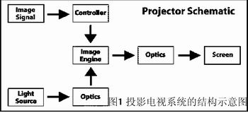 投影技术自从走上历史舞台,就以惊人的速度不断成长,各项技术指标得到大大改善,不断有新型投影技术推出。图1是一般的投影电视系统的结构示意图。从图1我们可以看到,投影电视系统一般是由以下几部分构成: