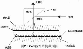 由于背投影显示技术的优势,现在,有关背投影技术的研究成为当今显示领域的热点,而其中非常引人注目的技术,是LCoS背投影技术。现在应用于背投影的主要显示技术象LCD(穿透式液晶)、DLP(其核心是DMD:Digital Micromirror Device,TI专利)及LCoS可以说都引起了业界的研究热潮,其中LCoS技术具有它自身特有的优势。图2是LcoS器件结构截面图。